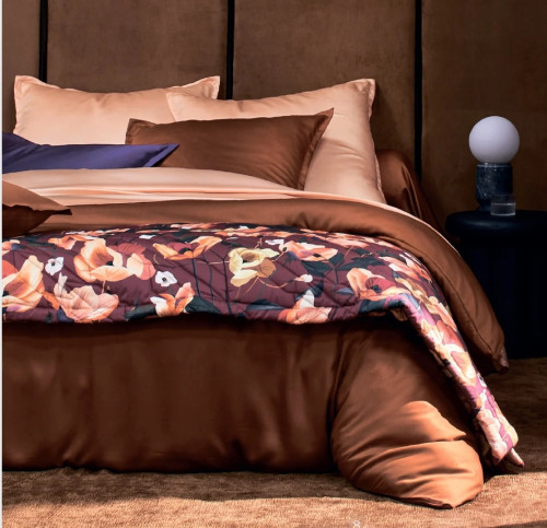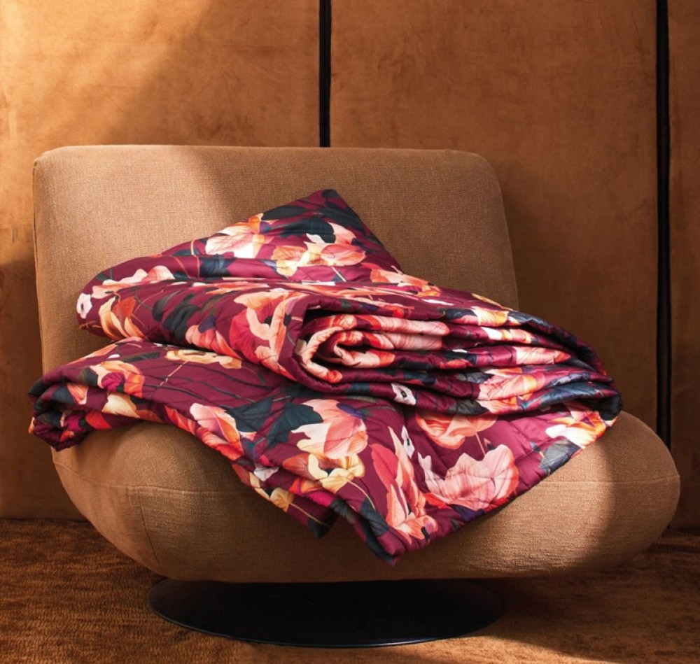 Стеганое покрывало из принтованного атласа Rhapsodie Grenat