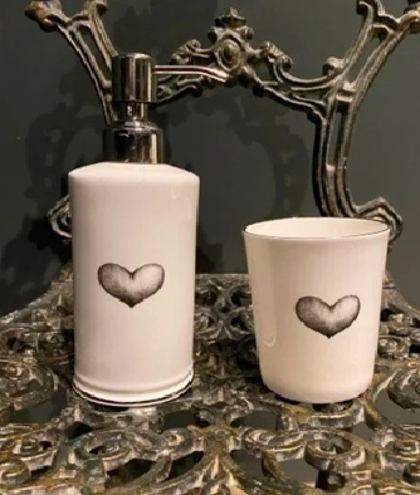 Фарфоровый стаканчик для зубных щеток Black Love Heart